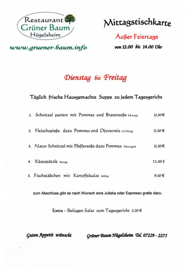 Mittagstischkarte